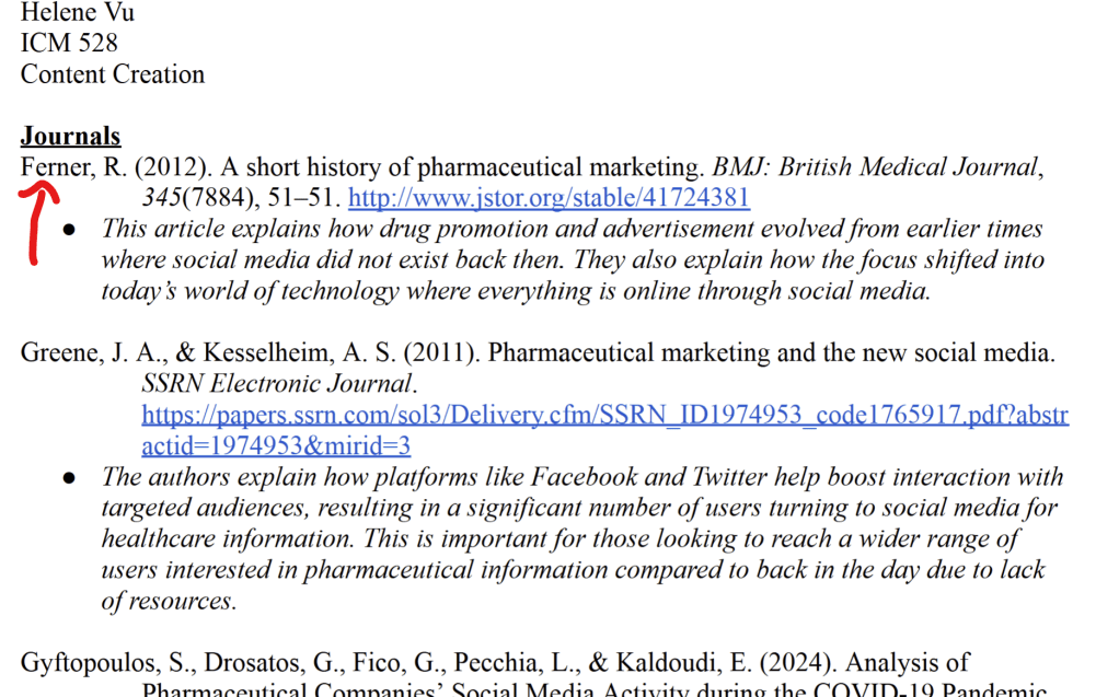 I occupied most of Saturday morning and afternoon reviewing the sources in my initial bibliography. I made extensive notes on all of them, summarizing the key points and considering how they related to my overall aim. The more I researched, however, the more I realized that some sources I had initially chosen weren’t working for where I was going. Some simply weren’t the appropriate choice for what I needed to accomplish, so I went and substituted those with better alternatives. I also acknowledged a gap in my research: I needed more targeted information on how LinkedIn specifically plays a role in pharmaceutical marketing, particularly regarding social media websites like Facebook or Instagram. This realization helped to narrow my search and make my research even better. It’s intense labor, but I can feel the project becoming more polished and effective step by step.