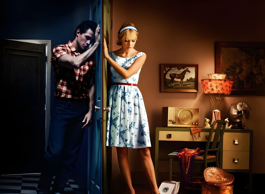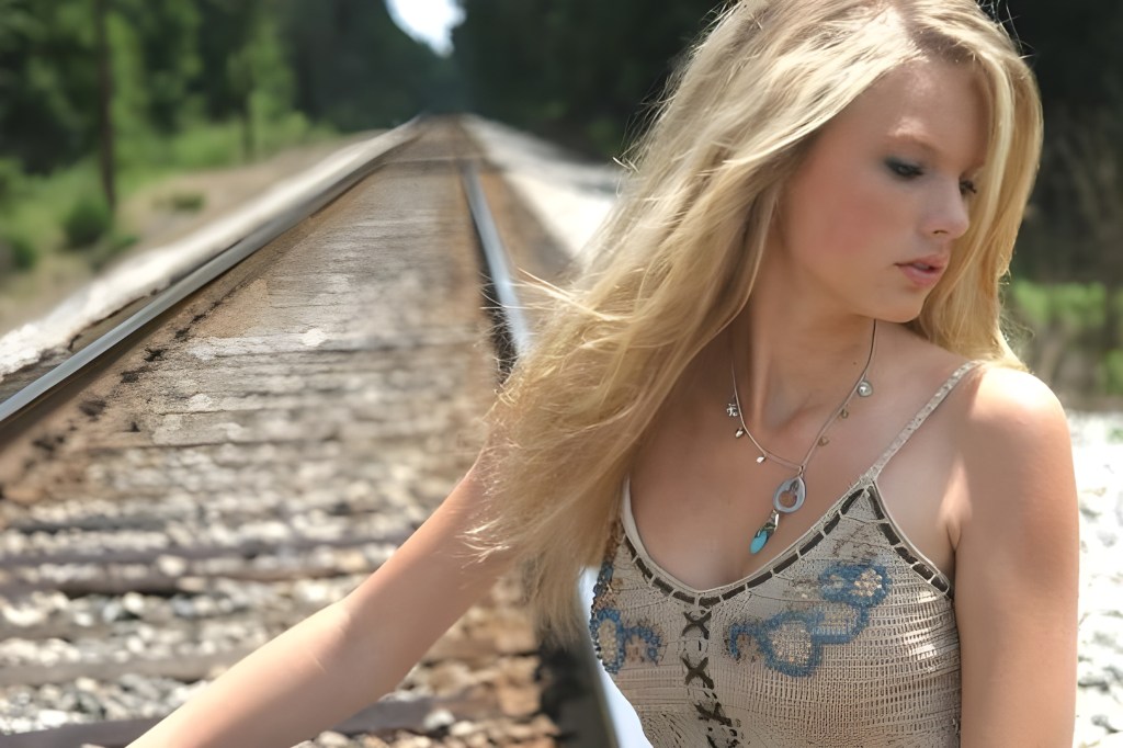 Here, we can see Taylor looking to the side while basking in the sunlight and sitting on the train track by herself. She’s thinking about her potential start to her music career due to her passion in songwriting and singing. Being a young woman, she already knows what she wants for her future and how she plans to jumpstart her music career. Sitting by the tracks in daylight helps her keep herself down to earth to keep her roots as a country girl.
